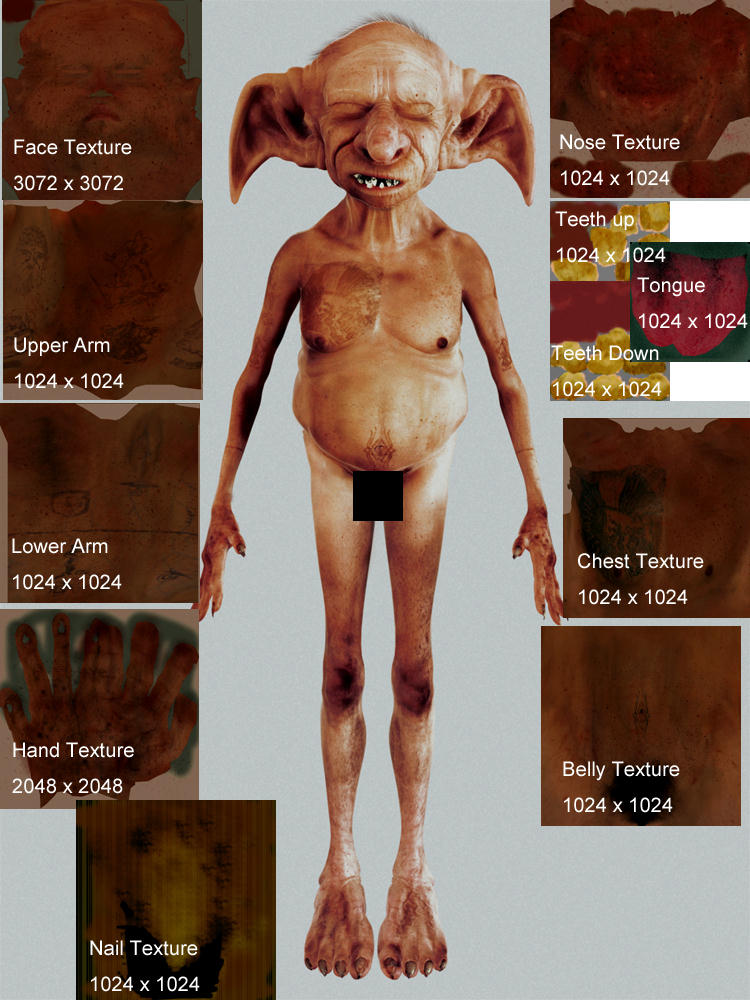 To add to these maps I painted lots of spot maps and colour maps that I could quickly apply to each texture. above is the texture for his right lower arm